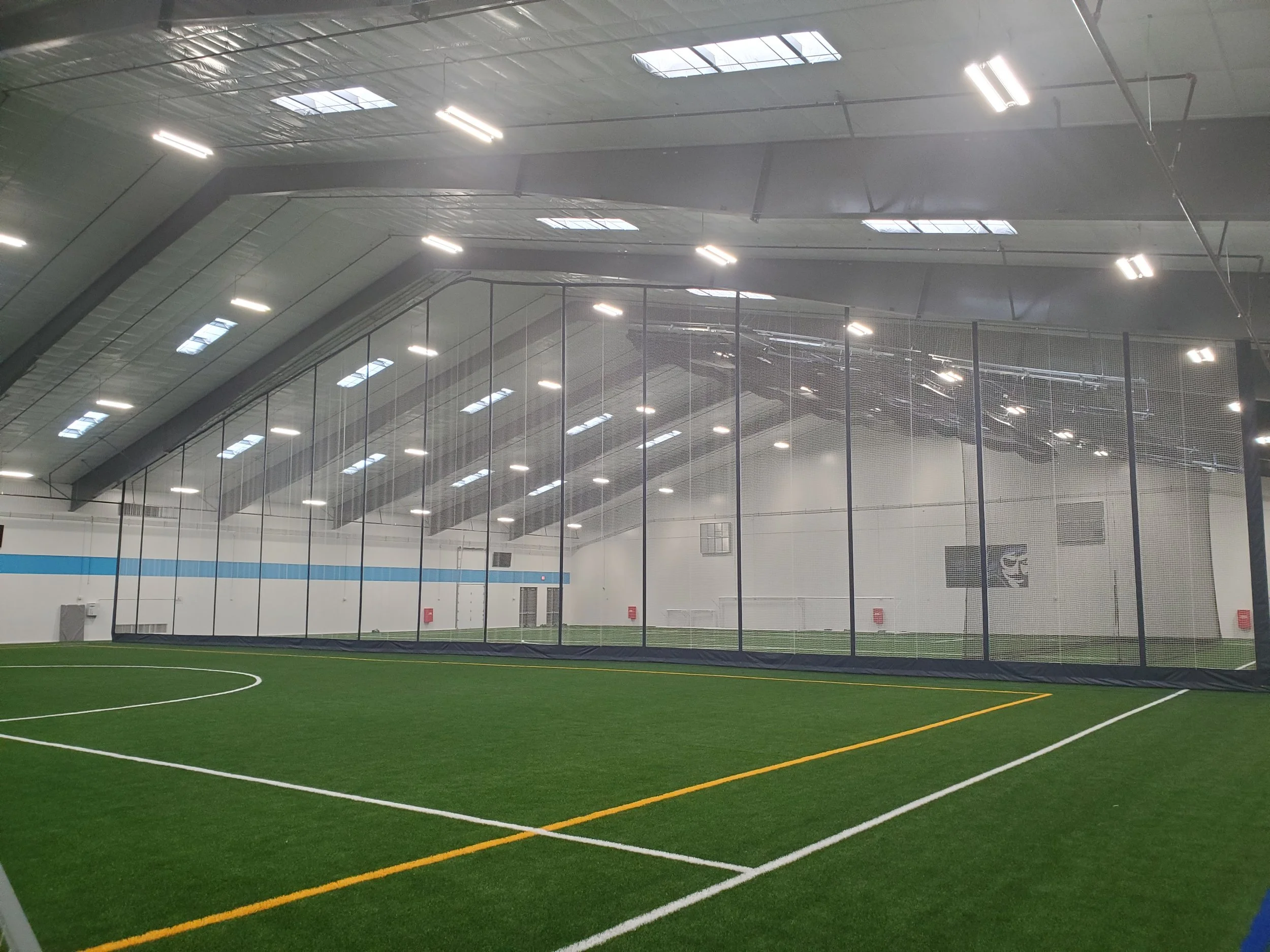 Two thirds of the turf — great for mid-size group training sessions, smaller tournaments, or sharing the facility with another group.